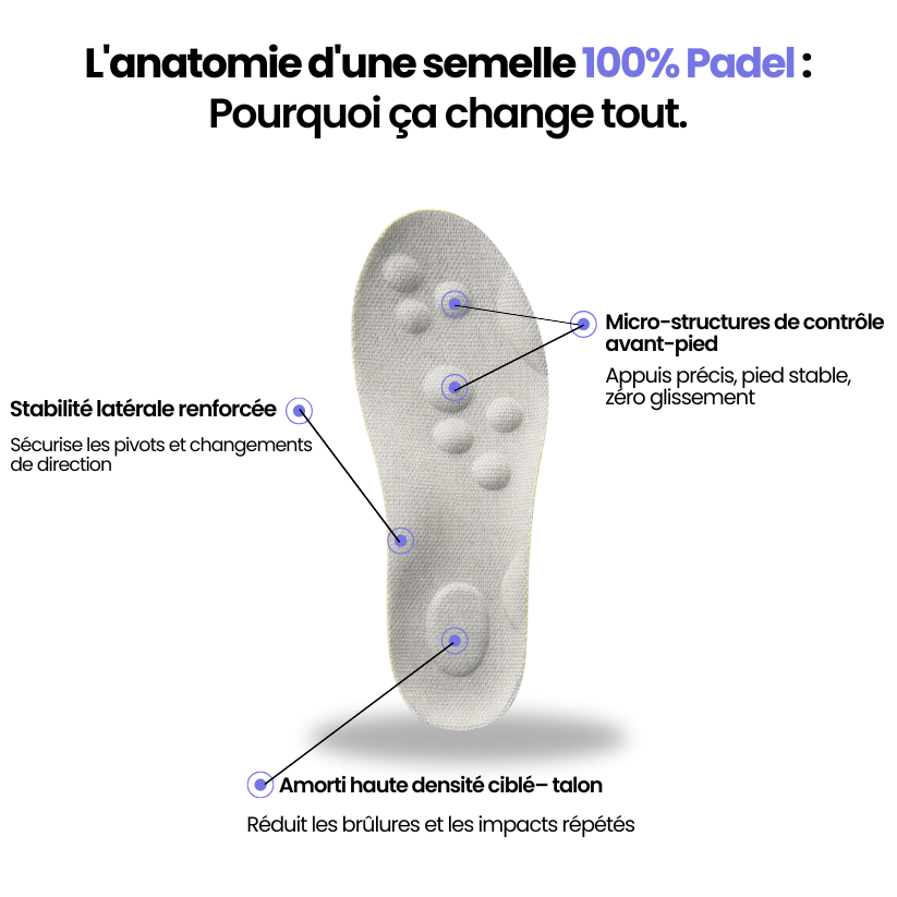 Le padel, c'est 80% de mouvements latéraux. Chaque pivot, chaque changement de direction brutal met une pression énorme sur l'intérieur de ton pied et tes chevilles.